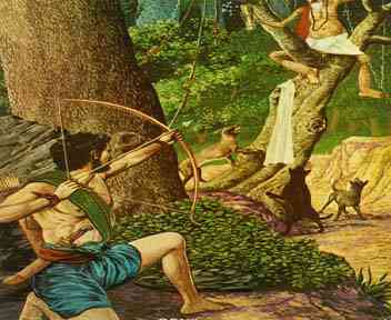 18 . พรานเจตบุตรพบชูชกก็ขู่จะยิงทิ้ง ชูชกจึงลวงว่า